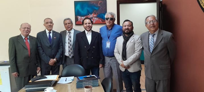Dr. Walter Zumba Presidente CRIGMPAL, Asesor Venzolano, Ing. Jaime Jarrin ex Director ARCOM, Ing. Rene Ayala Presidente de la AIME, Ing. Gustavo Pinto Decano Facultad de IngenierÍa, Geología, Minas, Petróleos y Ambiental UCE, Ing. Danny Burbano Director escuela de Minas UCE, Ing. Stalin Benitez Presidente Comisión Organizadora XI Congreso,