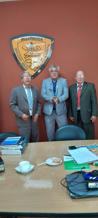 Dr. Walter Zumba Presidente CRIGMPAL, Ing. Gustavo Pinto Decano Facultad de Ingeniería Geología, Minas Petróleos y Ambiental UCE, Ing. Stalin Benitez Presidente Comisión Organizadora XI Congreso,
